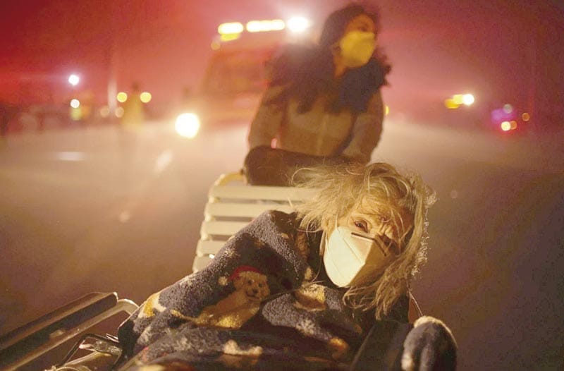 Las llamas de un incendio que comenzó el martes por la tarde cerca de una reserva natural al noreste de la ciudad se extendieron tan rápidamente que el personal de una residencia de ancianos tuvo que sacar a docenas de internos —incluido uno de 102 años— en sillas de ruedas y camas de hospital calle abajo hasta un estacionamiento donde esperaron con su ropa de dormir mientras el cielo nocturno se teñía de rojo por las llamas y caían brasas a su alrededor, hasta que ambulancias, autobuses e incluso furgonetas de construcción llegaron para llevarlos a un lugar seguro.