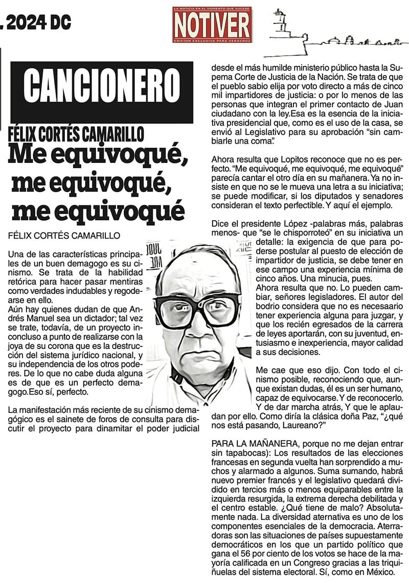 CANCIONERO | ME EQUIVOQUÉ, ME EQUIVOQUÉ, ME EQUIVOQUÉ - Una de las características principales de un buen demagogo es su cinismo. Se trata de la habilidad retórica para hacer pasar mentiras como verdades indudables y regodearse en ello...