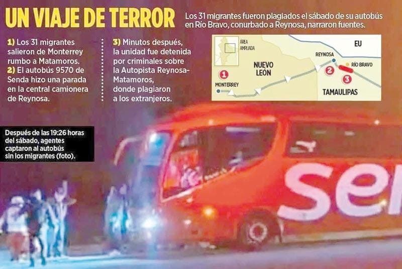 * Criminales interceptaron un autobús en Reynosa y plagiaron a 31 migrantes, pese a que activistas alertaron alza de secuestros en la zona