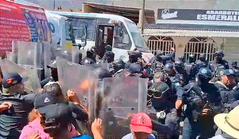 Los hechos ocurrieron cerca de las 16 horas cuando elementos antimotines arribaron al municipio y se desplegaron donde decenas de personas se manifestaban en contra de la corporación y por la desaparición del joven mencionado.