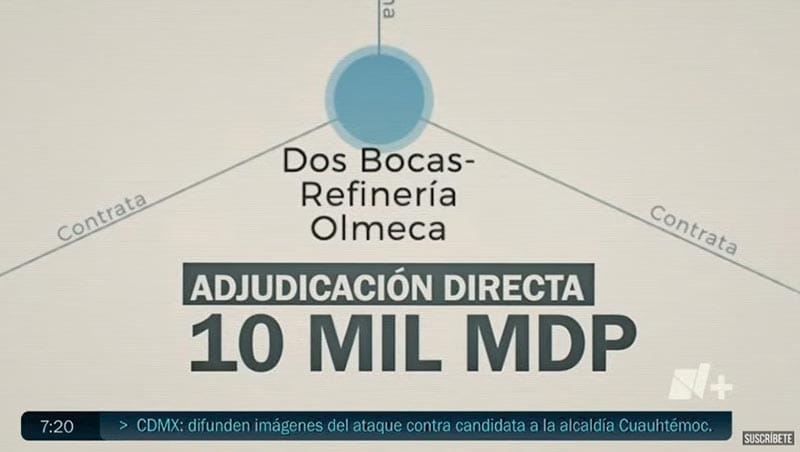 Por ejemplo, se dan por adjudicación directa contratos por al menos 10 mil mdp a dos redes de empresas de reciente creación que incluso habían sido sancionadas por corrupción previamente, una de estas redes ha recibido contratos por al menos 2 mil 500 mdp.