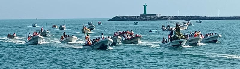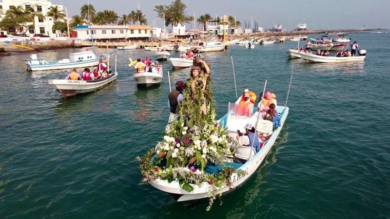 Las actividades comenzaron con un recorrido náutico por el mar, encabezado por la alcaldesa y el obispo de Veracruz, Carlos Briseño Arch, partiendo del Muro del Pescador.