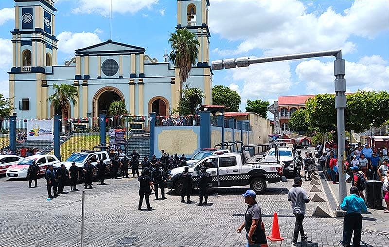 Lo que no contaban es que uno de los comerciantes se percató que adentro de la unidad iba una mujer con casco y pasamontañas, al parecer elementos de la corporación local.