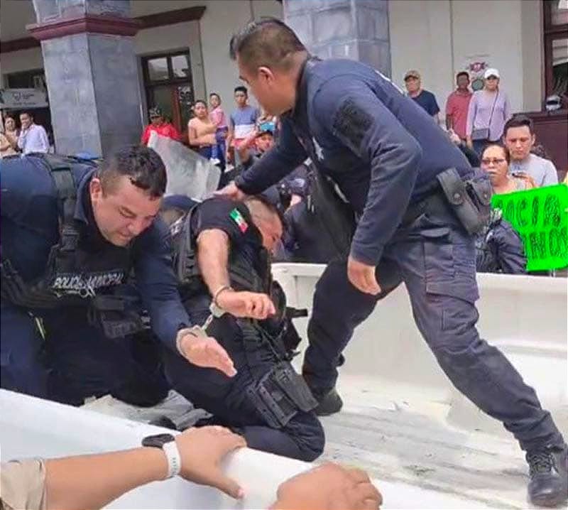 Sin embargo, los empleados de construcción apoyados por Policías Municipales no hicieron caso y metieron un trascabo, lo que enfureció a los ciudadanos.