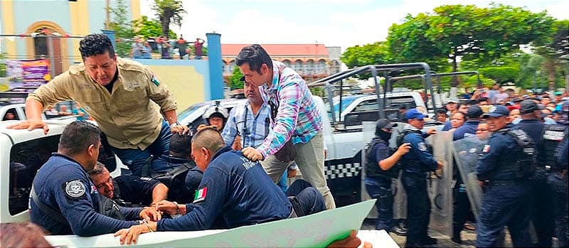 SAN ANDRÉS TUXTLA, Ver.-.Disfrazada de elemento de la Policía Municipal hasta con casco y pasamontañas, la presidenta municipal de San Andrés Tuxtla, al sur del estado de Veracruz, María Elena Solana Calzada, alias la Doctora Remedios, intentó huir de una turba que la quería linchar.