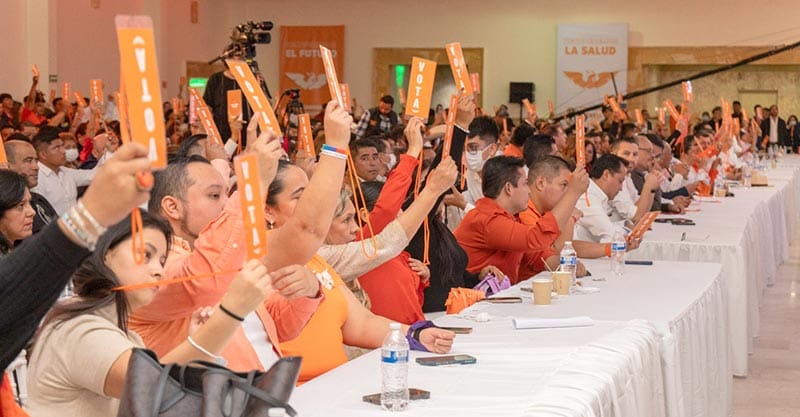 Dijo Dante que con la fuerza de millones de veracruzanas y veracruzanos libres se recuperará el futuro, fue un evento emotivo y pletórico y estuvo a reventar, la cuarta asamblea de delegados del MC, los delegados presentes votaron por unanimidad para que Carbonell fuera ungido como nuevo líder del movimiento.