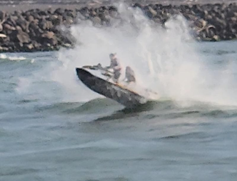 Boca del Río, Ver. Los que andan fuera de control sobre el Río Jamapa y la desembocadura al Golfo de México son las motos acuáticas que están en renta, así como lanchas menores de diversión que navegan a altas velocidades para desafiar las olas frente al llamado Foro Boca, en Boca del Río.