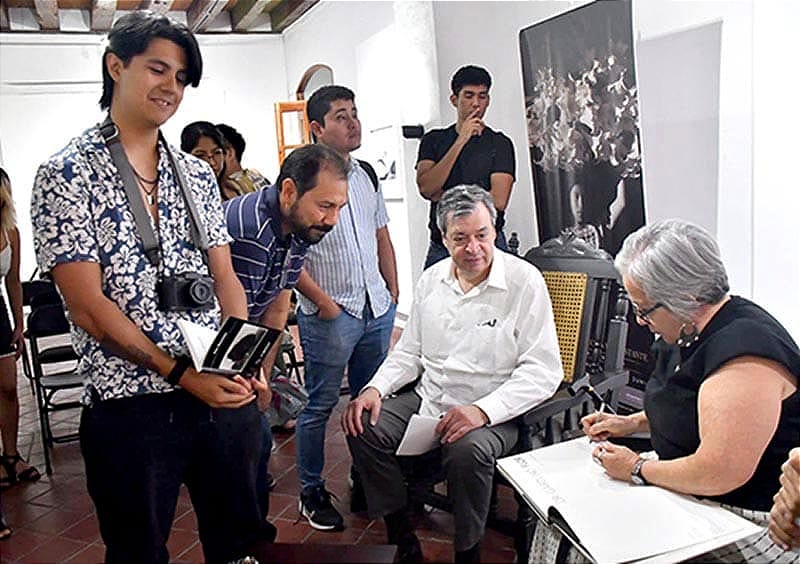 Adrián Mendieta, destacado fotógrafo y académico quien fuera director tanto del Instituto de Artes Plásticas como de la Facultad de Artes Plásticas de la Universidad Veracruzana, catedrático en la escuela de fotografía de la UV, fue el encargado de entrevistar a la creadora, para compartir los detalles de su amplia trayectoria, con énfasis en su meticulosa labor al realizar impresiones combinando procesos análogos y digitales, además de su maestría en el manejo de la luz natural al momento de trabajar con película en blanco y negro.