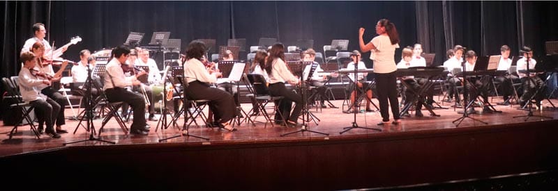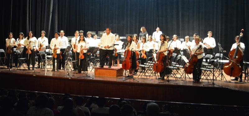 El programa abrió con “Mi Orquestita”: Himno a la Alegría/L. V. Beethoven, Canon D/Johann Pachelbel, Marcha Turca (fragmento)/ L.V. Beethoven y Barbero de Sevilla(fragmento)/Gioachino Rossini, siendo responsables los maestros Nubia A. Acevedo López y Miguel Ángel Gutiérrez.