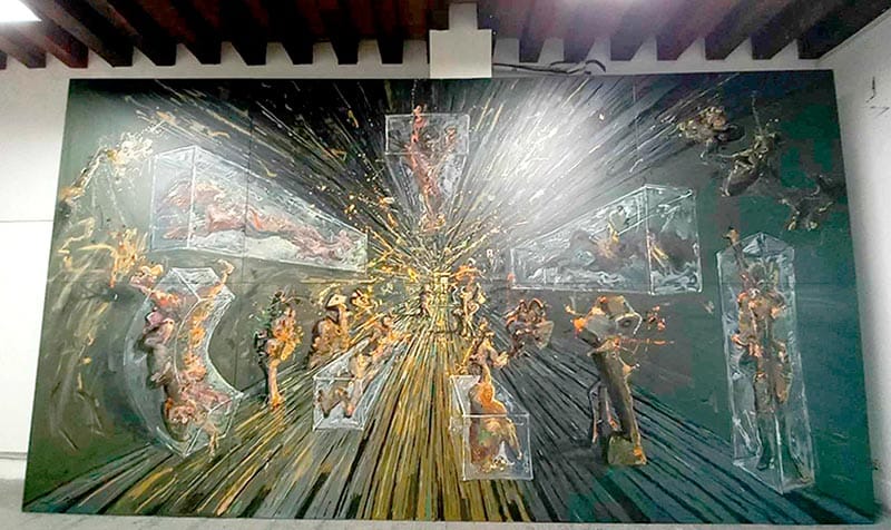 Entrevistado por NOTIVER, Jazzamoart explica que la muestra con más de 30 piezas realizadas entre 2018 y hasta nuestros días, ha sido itinerante, “Tiene la primicia de que por primera vez se exhibe la pintura de gran formato que presento, mide 4 x 8 metros, además es la culminación de la gira de la obra que se ha exhibido en Guanajuato, Oaxaca y ahora Veracruz”.
