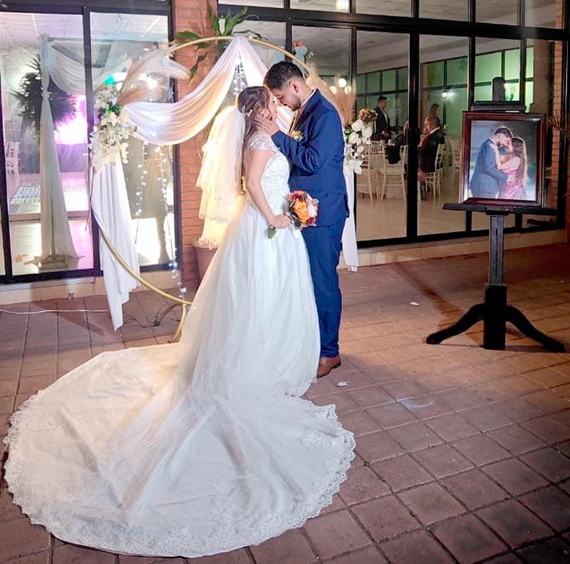 Durante la recepción, los novios bailaron el vals y convivieron con gran alegría con sus invitados, quienes les desearon felicidades.