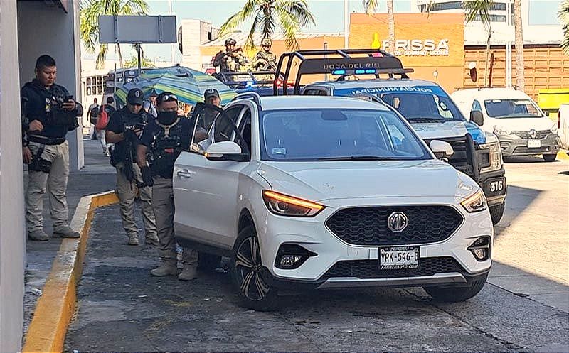 Minutos después la policía localizó abandonada la camioneta marca MG de color blanco, a un costado de Plaza Las Américas, frente a Prissa, donde fue asegurada por la policía de Boca del Río.