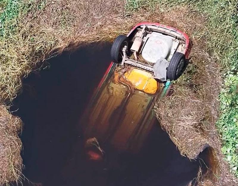 Con apoyo de una grúa, el automóvil siniestrado fue rescatado del fondo del pantano y trasladado al corralón donde ha quedado a disposición de la fiscalía que investiga la tragedia.