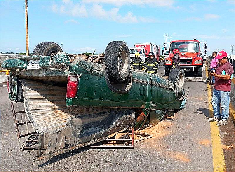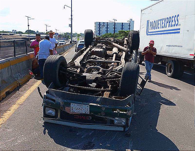 Una camioneta, marca GMC tipo Sonoma, se accidentó y volcó en lo alto del puente de Las Amapolas en el puerto de Veracruz, en donde iban tres trabajadores de la construcción originarios de Soledad de Doblado.