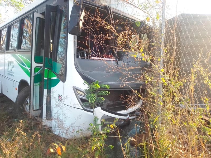 El fuerte impacto ocasionó que el autobús, conducido por Moisés Hernández Espinosa, perdiera una llanta y se saliera de la cinta asfáltica, quedando parcialmente entre la maleza.