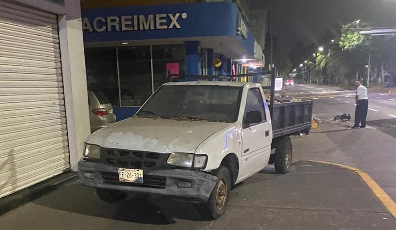 Al volantear perdió el control de la unidad y chocó contra la unidad estacionada. Luego arribaron los oficiales peritos de Tránsito Municipal de Veracruz para hacerse cargo y deslindar responsabilidades.