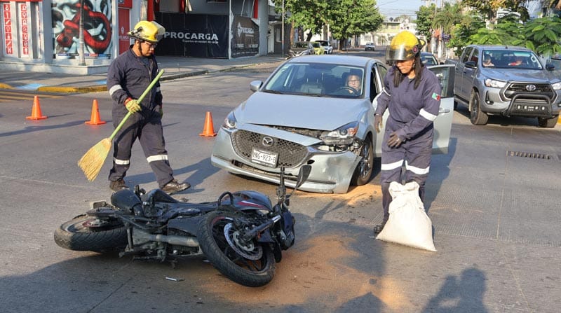 En el percance estuvieron involucrados una motocicleta Bajaj Pulsar N-250 color negro y conducida por Abisai García Solís, de 31 años, y un vehículo Mazda 2, modelo 2023, color plata y conducido por Gloria Verónica Burelo Fernández.
