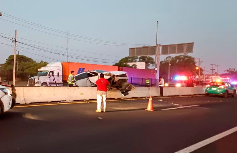 A la altura del retorno de Geo Pinos, al norte de la ciudad de Veracruz, una unidad marca Jeep acabó trepado sobre el muro de concreto divisor de la autopista Veracruz-Cardel, dejando una persona con lesiones menores y una fuerte crisis nerviosa.