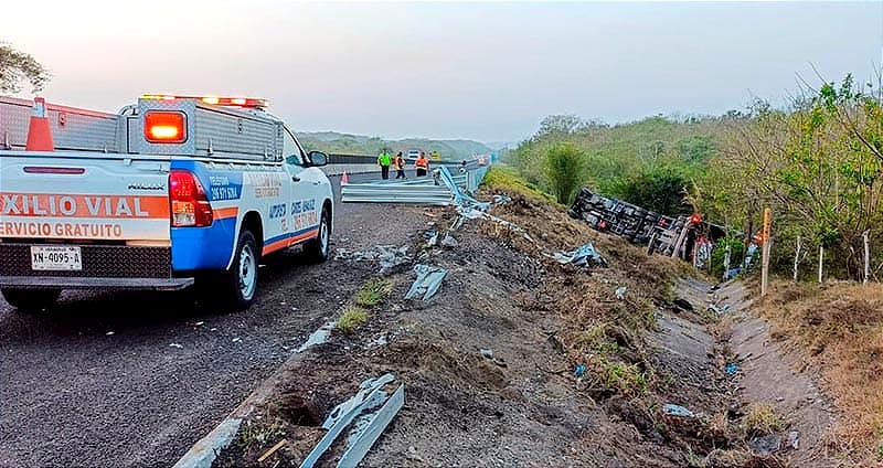 Ante de la caseta de cobro, dentro del municipio de La Antigua, presuntamente se habría quedado dormido y terminó saliéndose de la carpeta de rodamiento, volcando sobre el costado derecho.