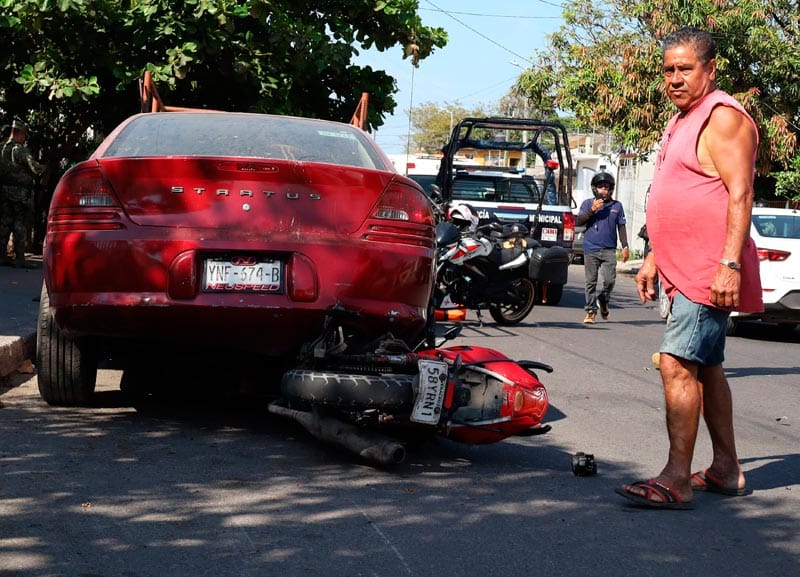 En calles de la colonia Niños Héroes, en la ciudad de Veracruz, un motociclista sufrió fracturas en la pierna izquierda al chocar contra un taxi, generando la presencia de los cuerpos de emergencia y Agentes de Tránsito.