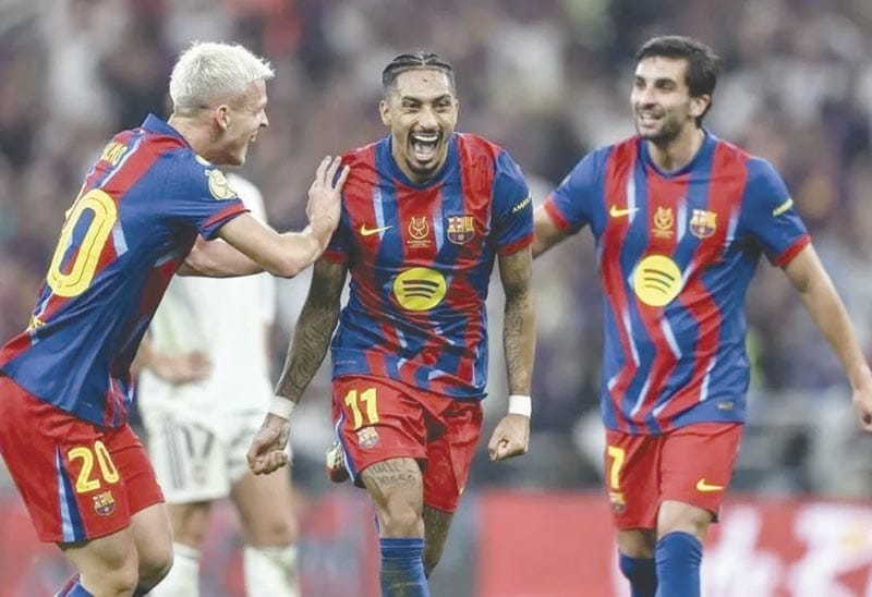 El FC Barcelona defendió con éxito su título de la Supercopa de España al vencer este domingo 3-2 al Real Madrid en el Estadio King Abdullah de Arabia Saudita.