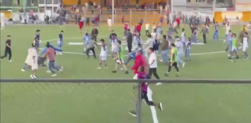 Vaya broncón que se dio en este escenario donde fue claro que no existió la Seguridad Pública, error de quienes organizan esta Liga que ha descuidado “detalles” importantes, una batalla campal que pudo haber terminado en una verdadera tragedia, ya que tomaron parte además de los dos planteles, porras y personas que estaban afuera del estadio que nada tenían que ver con el partido.