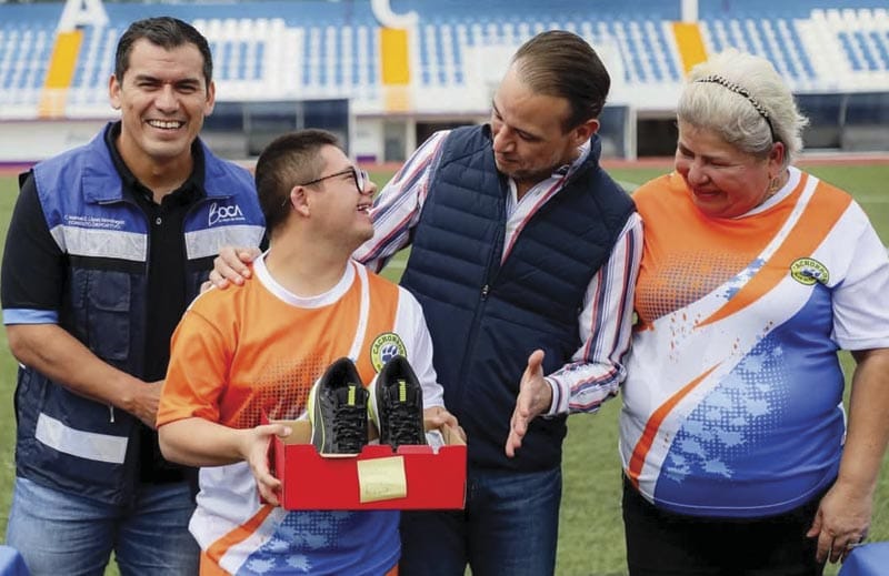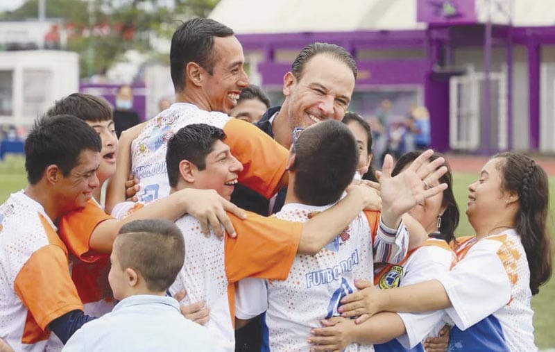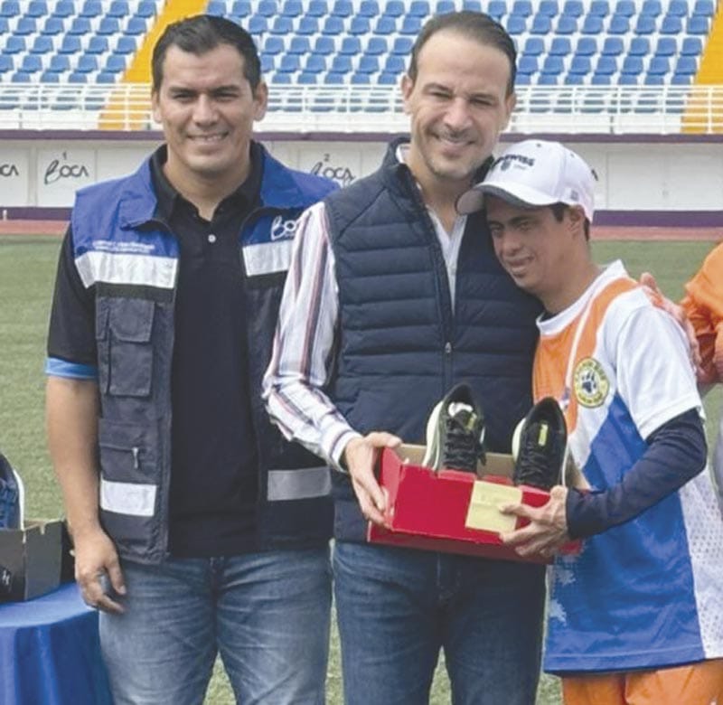 Integrantes del equipo “Cachorros” de la Fundación Síndrome de Down Veracruz AC, recibieron de manos del alcalde de Bpca Del Río, Juan Manuel Unánue Abascal, calzado deportivo destacando la importancia de ofrecer oportunidades para la integración y el bienestar a través del deporte y el compromiso social.