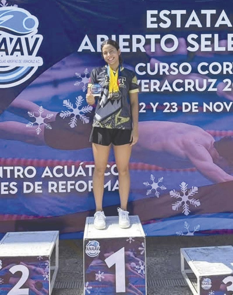Marisela ratificó su estatus como la mejor nadadora juvenil de Veracruz al colgarse nueve medallas de oro, a las que sumó dos de plata y una de bronce en su categoría. Su desempeño fue clave en la victoria global del equipo.