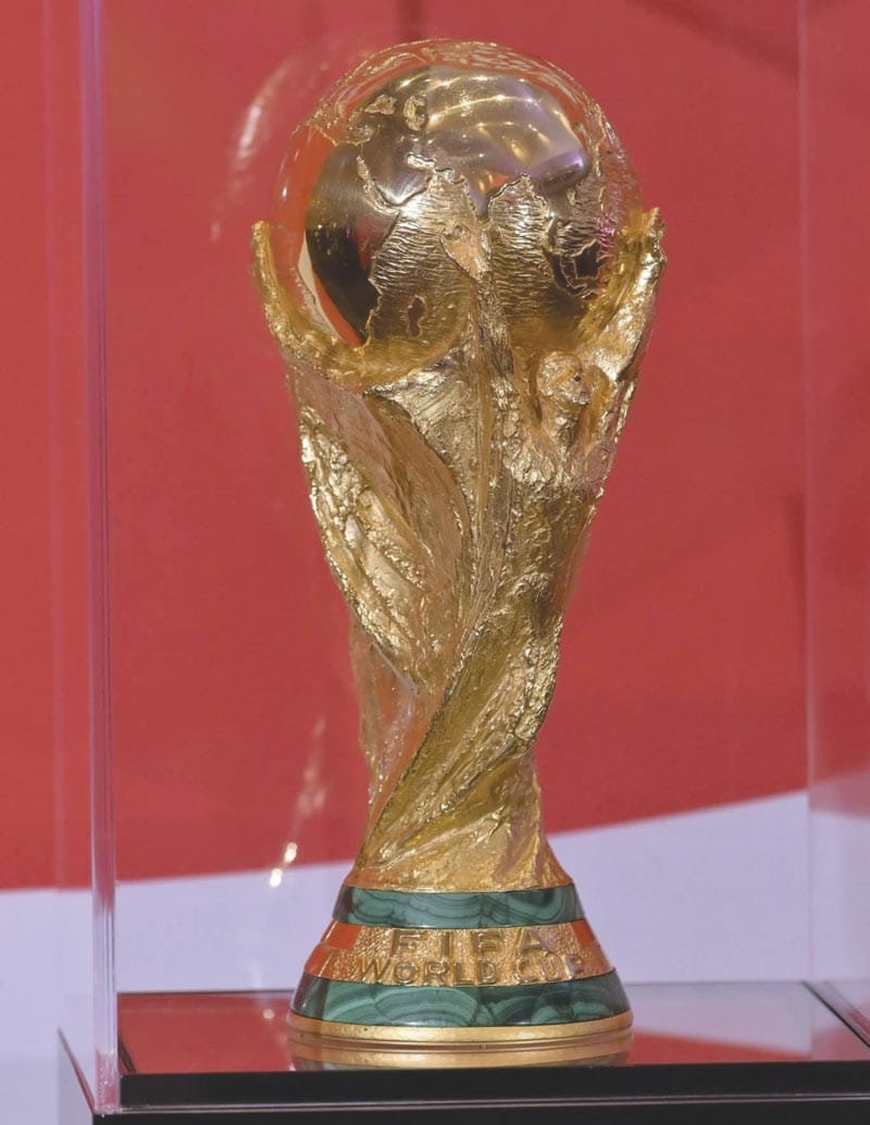 El trofeo está elaborado en oro macizo de 18 quilates y con un peso de 6.1 kilogramos, su diseño representa a dos figuras humanas sosteniendo el mundo y constituye uno de los símbolos deportivos más reconocidos a nivel mundial, por lo que estos dos días los aficionados podrán tomarse la foto del recuerdo en esta exhibición en el WTC.