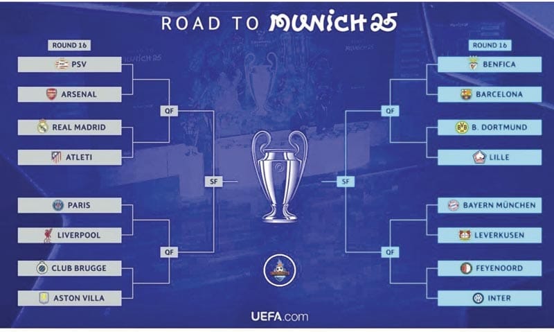 Los encuentros de Octavos de la Champions League quedaron definidos con el derbi de Madrid, un clásico alemán y un raro duelo entre Liverpool y Paris Saint-Germain.