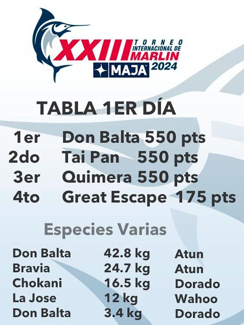 Cabe mencionar que no se registraron capturas de Marlín en el primer día de competencia.