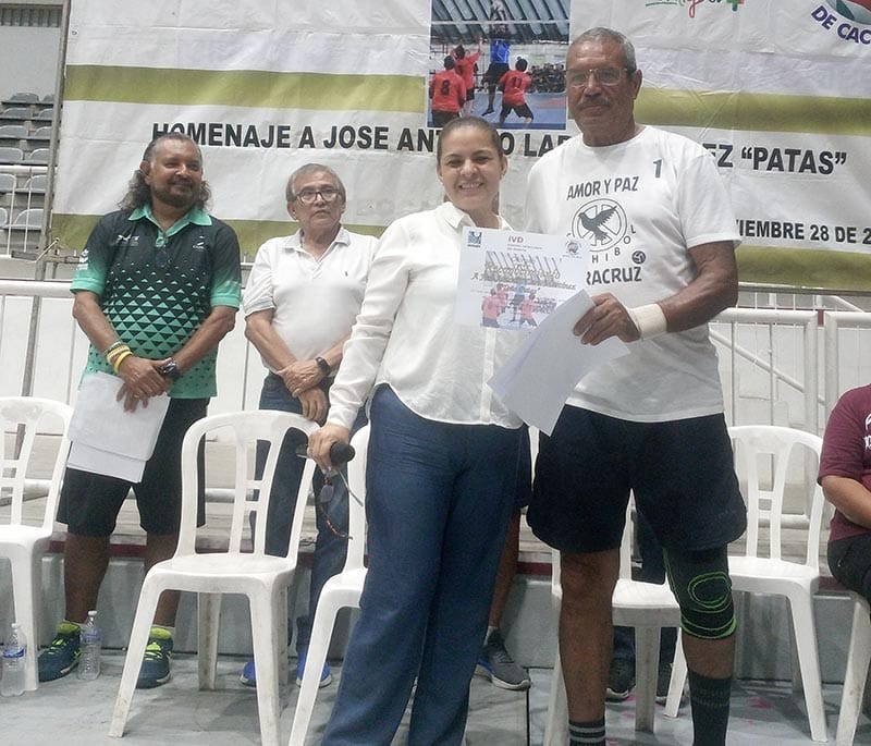 El pasado jueves en la Arena Veracruz del Instituto Veracruzano Del Deporte, el Cachibol Veracruzano rindió un merecido reconocimiento a uno de los grandes jugadores de voleibol de Veracruz, nos referimos a José Antonio Martínez “Toño Patas” que estuvo acompañado por su familia y varios amigos.