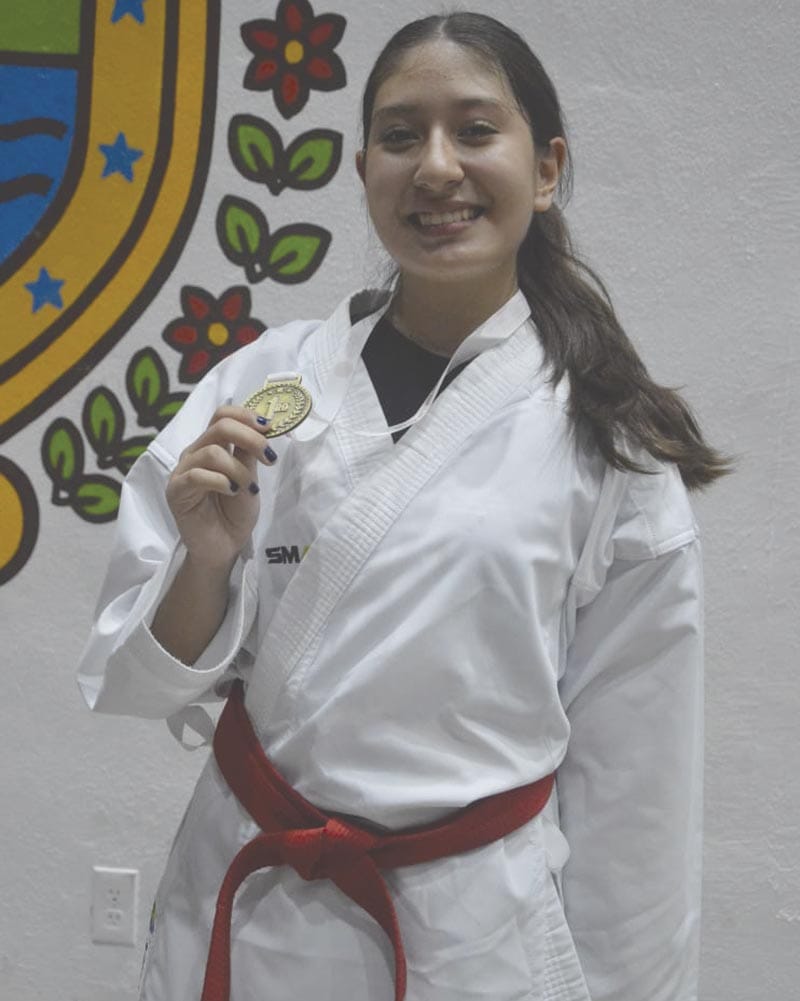 Victoria Yamada, Gabriela Pérez, Samantha Cerecedo, primer lugar en Kats por equipo femenil en el evento estatal que se llevó a cabo en Poza Rica...