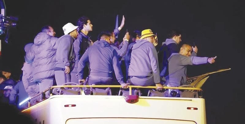 Mientras avanzaban, lanzaron algunos playeras de regalo. En el Estacionamiento General del Estadio Azteca se ubicaron otros miles de seguidores azulcremas, en espera de ver a sus ídolos que viajaron desde Estados Unidos para festejar con su gente.