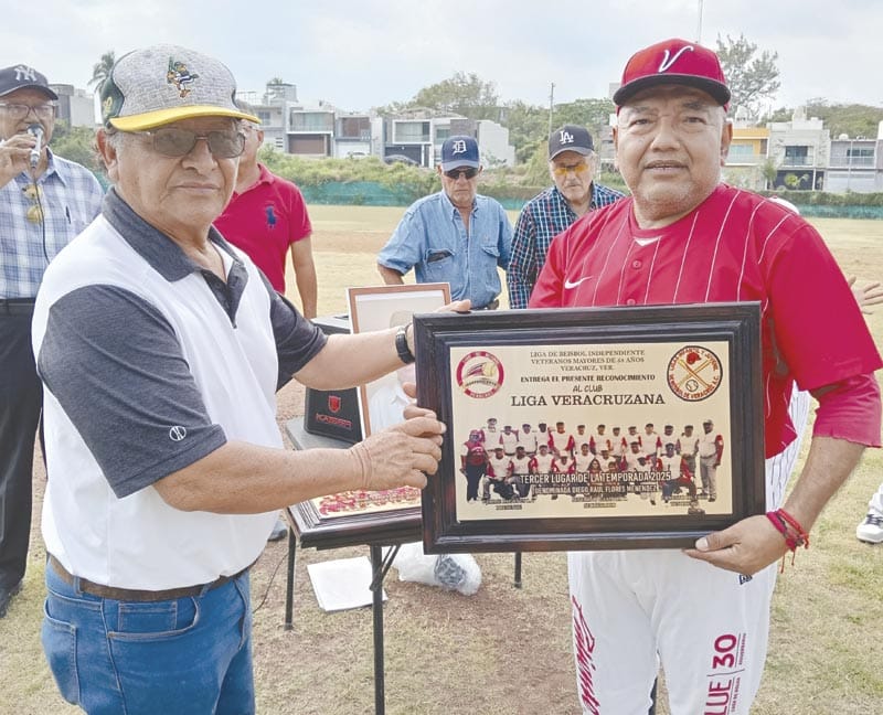 El pasado sábado se puso en marcha el campeonato de beisbol de Veteranos 58 y más que organiza la liga Independiente de Veracruz, donde participan seis equipos, en la breve pero emotiva ceremonia inaugural se entregaron reconocimientos a los mejores equipos del torneo anterior y a la familia de Diego Flores que recién nos dejó y cuyo torneo llevó su nombre.