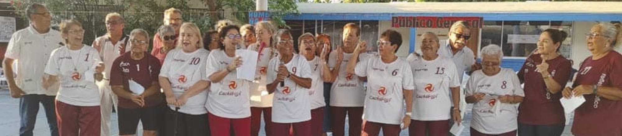 Fue una ceremonia sencilla pero emotiva donde integrantes del Club Vida, que juega al Cachibol, encabezadas por Petrita quienes fueron la escolta para los honores a la bandera para luego cantar el himno nacional.