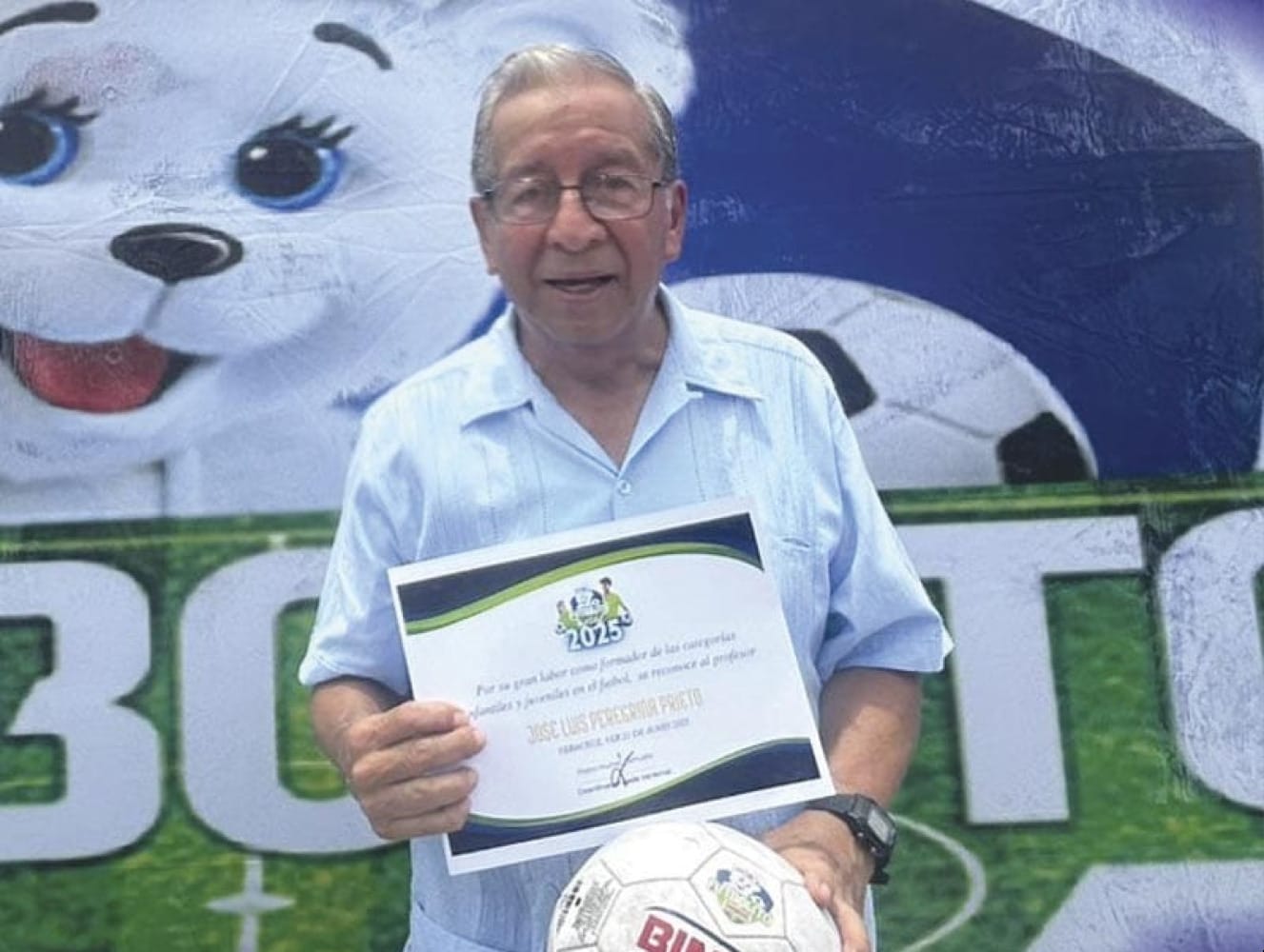 Por su larga y positiva carrera como formador en el futbol infantil y juvenil, el comité organizador del Futbolito Bimbo 2025 en Veracruz, hizo entrega de un merecido reconocimiento al profesor José Luis Peregrina Prieto durante la ceremonia de premiación a lo mejor del torneo Estatal que se llevó a cabo en las canchas de La Pinera.