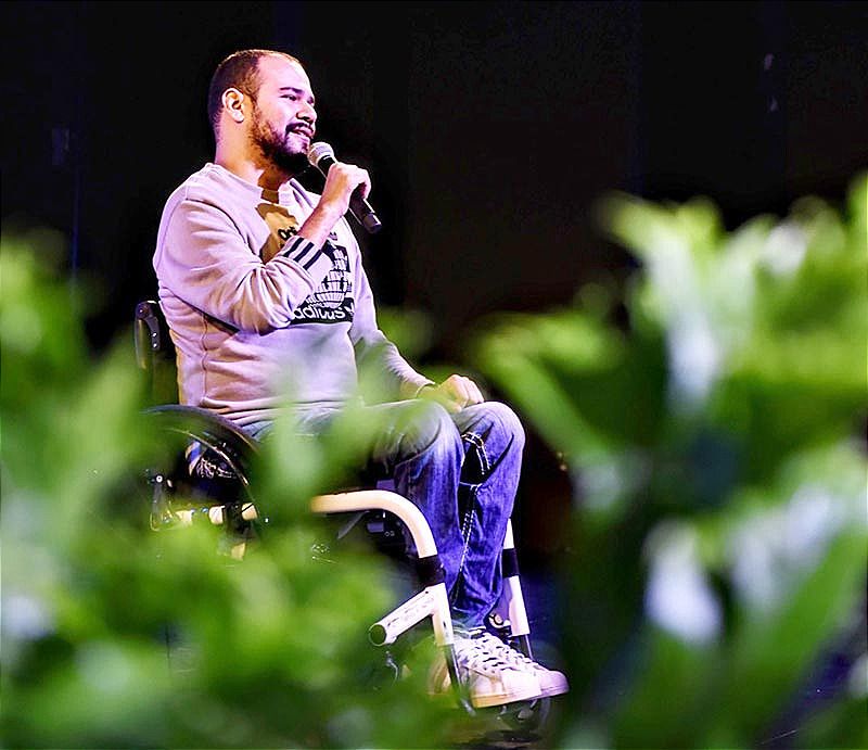 El atleta compartió con los asistentes sus vivencias personales y profesionales, en las que abordó temas como la amistad, el amor juvenil, sus inicios en la natación, la discapacidad y cómo hacer de las adversidades una oportunidad de vida.