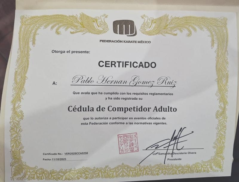 El deporte veracruzano se viste de gala tras la extraordinaria actuación de Pablo Hernán Gómez Ruiz, quien logró su integración oficial como seleccionado nacional de México para la prestigiosa Serie K Internacional de Karate.
