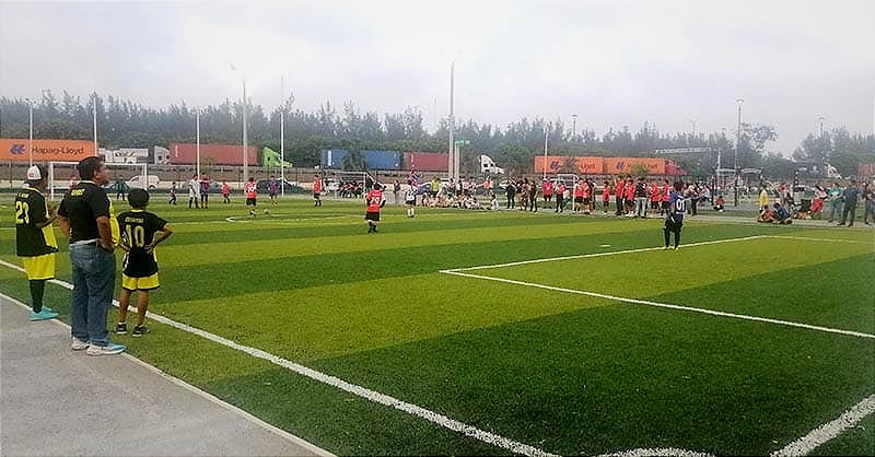 Dos canchas de Futbol 7 totalmente nuevas a las que se le agregaron gradas con techo de fibra de carbono, bancas para los jugadores y redes perímetrales para evitar que la pelota se pierda.