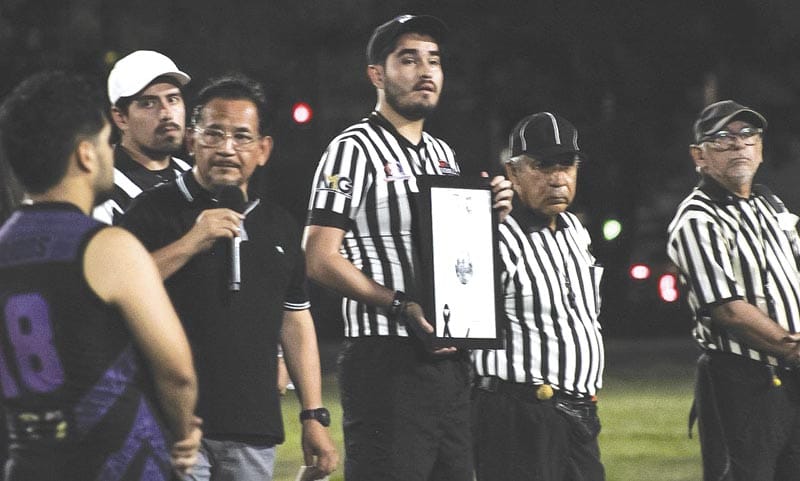 Un ceremonia sencilla pero muy emotiva ya que se hizo un merecido homenaje póstumo al señor Felix Alderete Gómez, coach y promotor deportivo en el Football Americano.