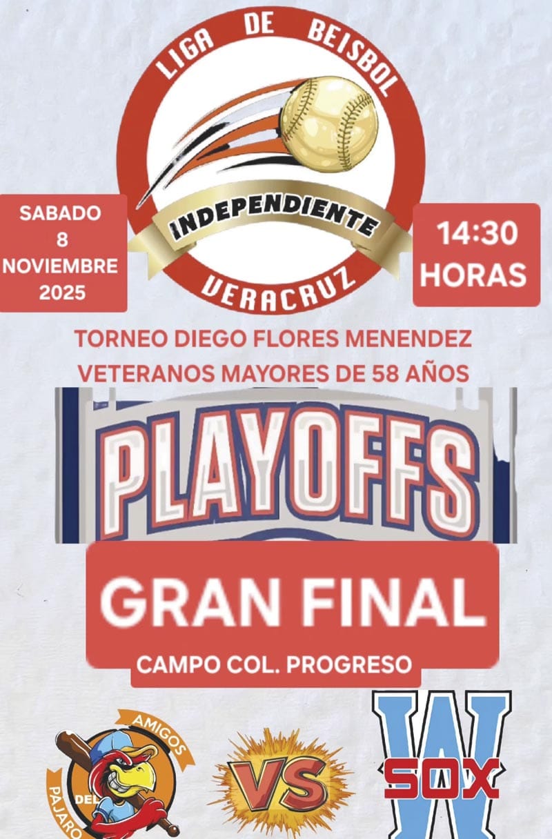 Este sábado a las 14:30 horas en el Campo Deportivo de La Colonia Progreso comienza la gran final del campeonato de béisbol de Veteranos 58 y más organizada por la Liga Independiente de Veracruz.