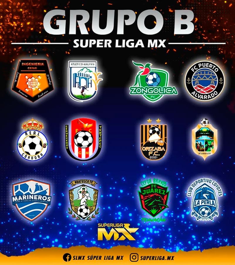 Por lo que hace al Grupo “A” aparecen, Brujos de San Andrés, Atlético FEFUV, Delfines CEFAR, Cafetaleros de Misantla, Perote, Toros Veracruz, Xalapa FC, Naranja Mecánica Xiute, Indios Karla Rico, Atlético Medellín y Afouteza.