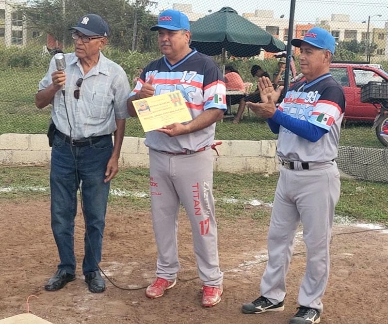 Al término del juego, la organización entrego un reconocimiento al jugador Miguel Ángel Guevara Alfaro por ser el mejor bateador interno del equipo de Veteranos, dicho reconocimiento fue entregado por en invitado especial don David Lozano presidente de la liga Perfecto Velez Ortiz y por el por el presidente de la organización Medias Blancas Seferino Gamboa.