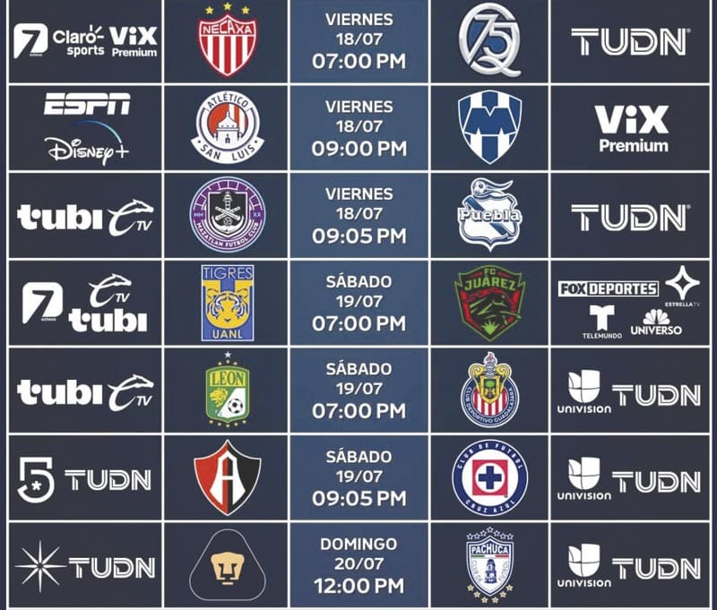 Para hoy la actividad arrancará a las 19 horas donde los Rayos del Necaxa reciben a los Gallos de Querétaro en la cancha del estadio Victoria en Aguascalientes, el equipo hidrocálido llega de perder con Toluca, mientras los emplumados cayeron en la frontera ante Tijuana.