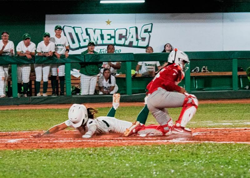 Las Olmecas atacaron rápidamente la serpentina de Yilian Tornés en la segunda entrada, con un ataque de cuatro carreras, 0-4 la pizarra.