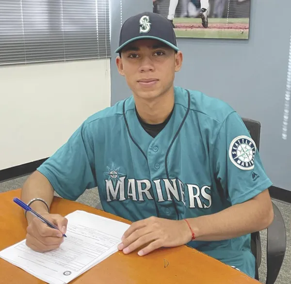 Luego de una estancia de un poco más de dos meses ayer finalmente la organización de Marineros le ofreció el contrato que el joven Veracruzano firmó teniendo a sus espaldas la foto de uno de los jugadores iconos de el equipo, Ken Griffey JR.