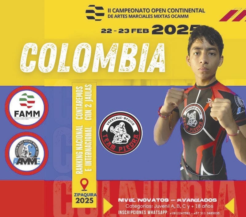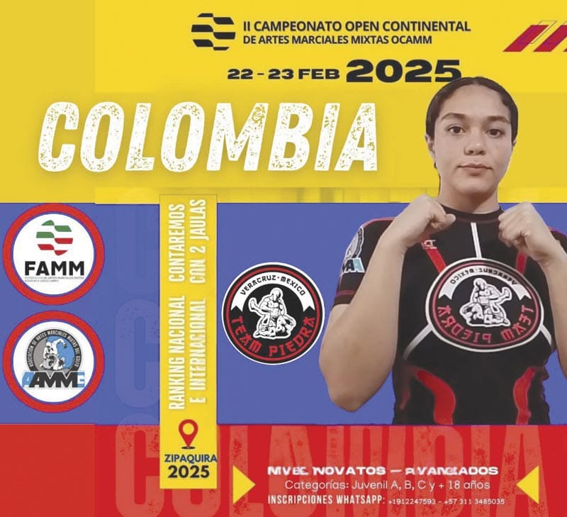 Un grupo de luchadores veracruzanos de la Escuela “Team Piedra Academy” estarán participando en el Segundo Campeonato Open Continental de Artes Marciales Mixtas OCAMM, el cual se realizará en Zipaquirá, municipio de Colombia ubicado en el departamento de Cundinamarca.