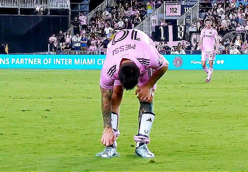 Momento exacto en el que Messi quedó tocado. Salió por molestias al minuto 37’ por lesión. 🤕🩼 pic.twitter.com/risNdMKqtT