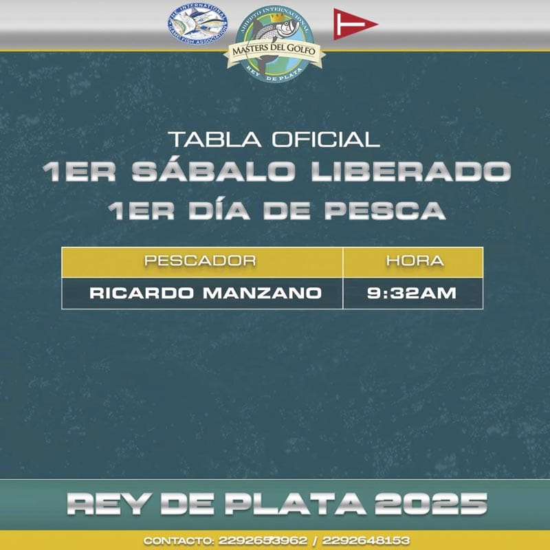 Tras una intensa jornada, Ricardo Manzano se alza como el líder provisional con un impresionante acumulado de 185 puntos. Manzano demostró su destreza desde el inicio al lograr la primera liberación de sábalo del torneo a las 9:32 horas, marcando el ritmo de la competencia.